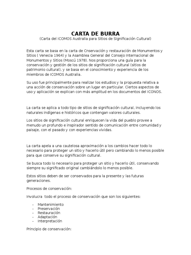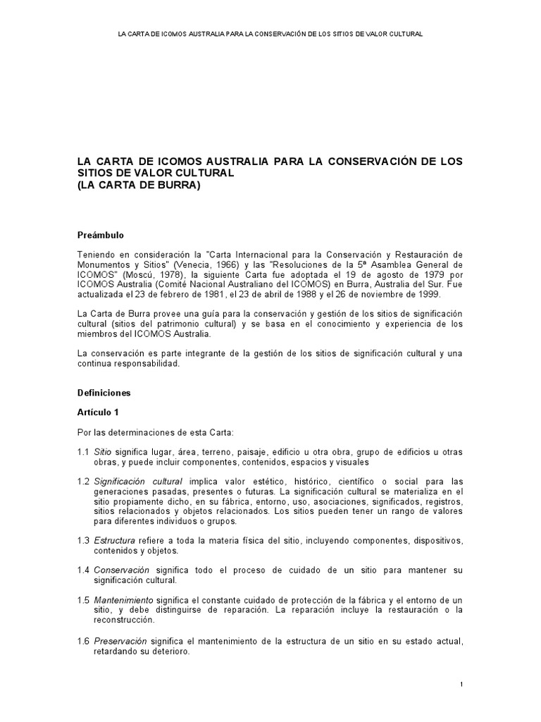 Carta De Burra 1999 Plan Carta De Burra 1999 Carta Del Icomos Australia Para Sitios De Significacion