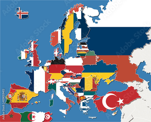 Mappa Europa Con Colore Bandiere Stock Illustration Adobe Stock